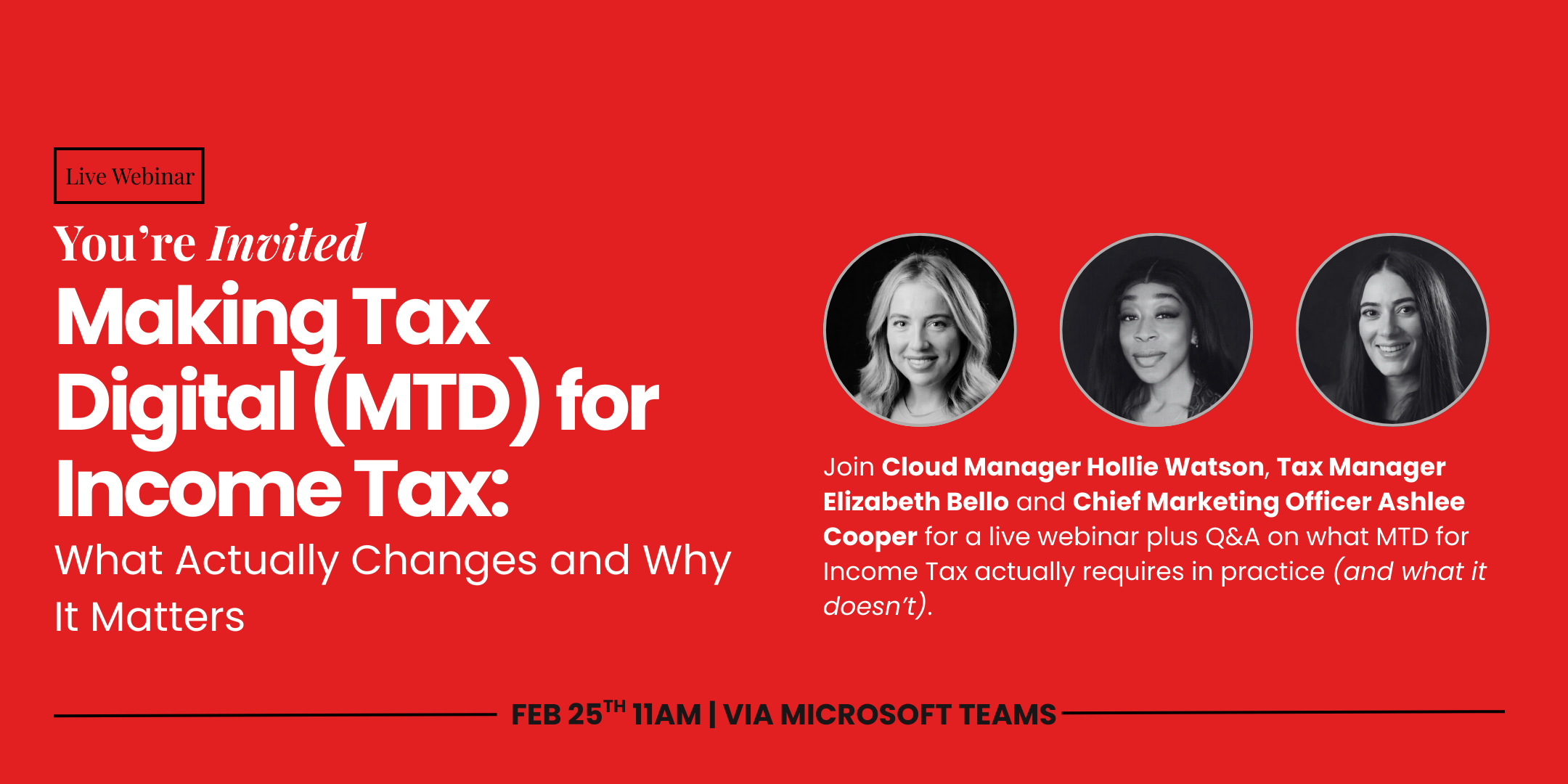 This session goes beyond a technical update, offering a clear and practical explanation of Making Tax Digital for Income Tax and what it means in real terms. Whether you are a business owner, landlord, sole trader, or simply want to better understand upcoming tax changes, you will gain expert insight and leave with a clearer understanding of how MTD works, why quarterly reporting matters, and how early awareness supports better organisation and decision making.